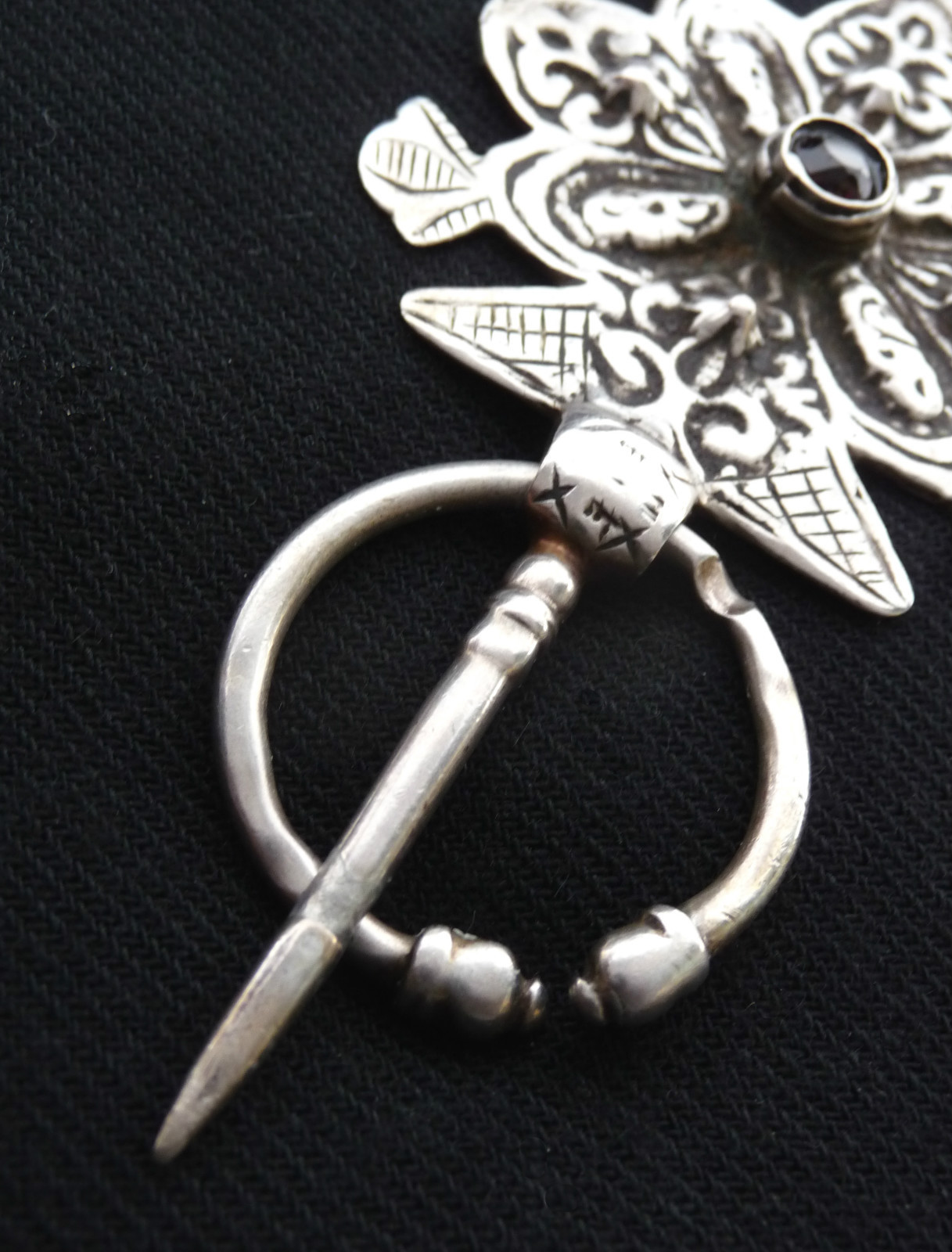 Berber FIBULA – Ait Hadiddou – High Atlas, Moroccoamazigh2012-09-23T10:43:31+01:00Early 20th century. Silver and glass gr. 37,1 (1.30 oz); cm. 11,3 (4.44”) high x cm. 5,0 (1.96”) width.