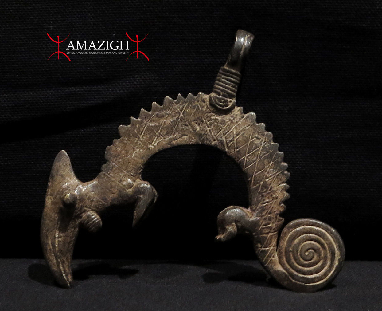 Bronze, shell. Cm. 6,8 high x cm. 3,5 width (2.68" x 1.38"). Gr. 24,8 (0.87 oz.). Metal works like this Dogon Sun Talisman is molded in bronze by ‘the lost wax method’, also called ‘cire-perdue’. This kind of metal molding is made with a wax model and a mold made from a heat...