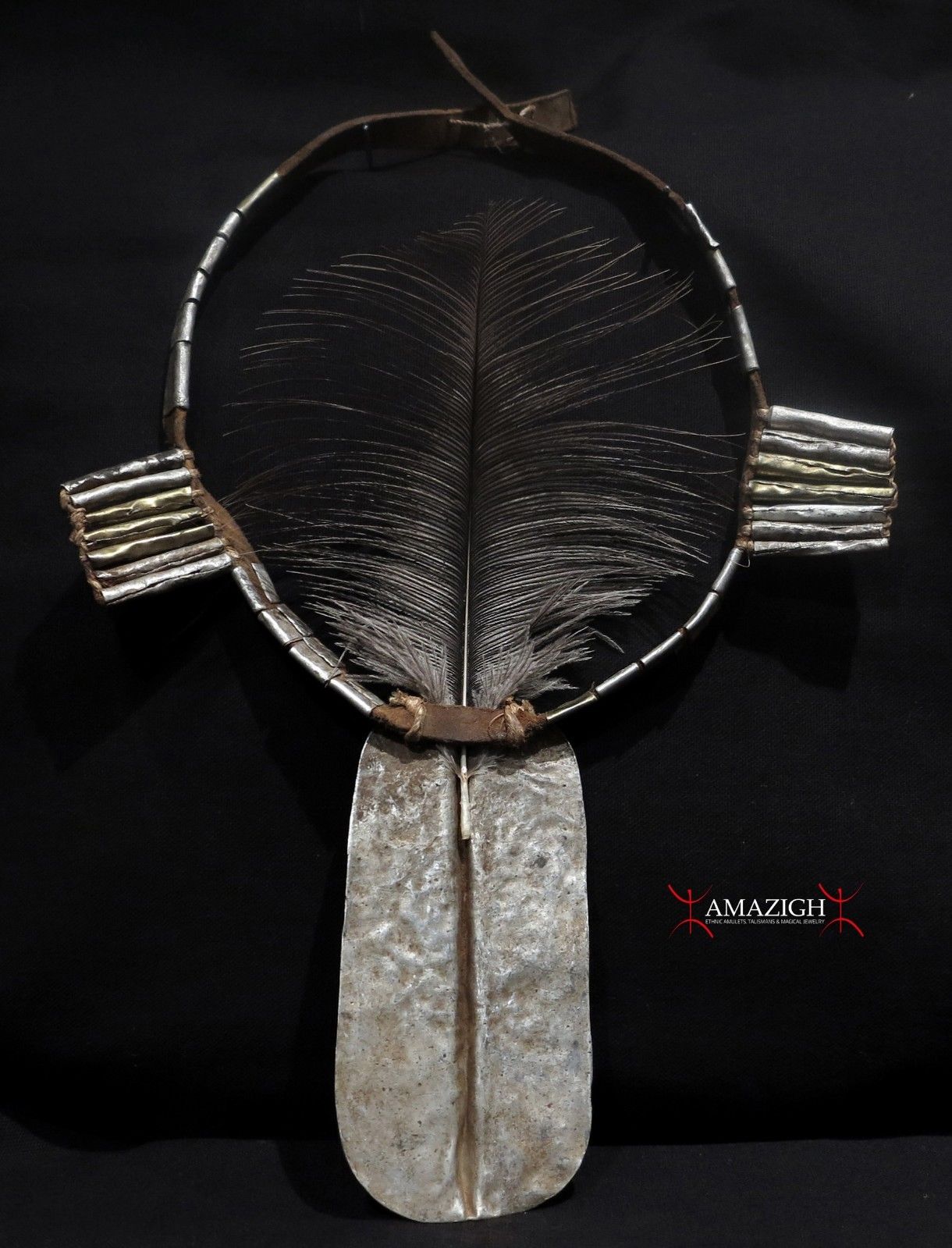 Aluminium, ostrich feather, leather. Approx cm. 33,0 high x cm. 16,0 width (12.99″ x 6.29″); gr. 61,8 (2.17 oz.).