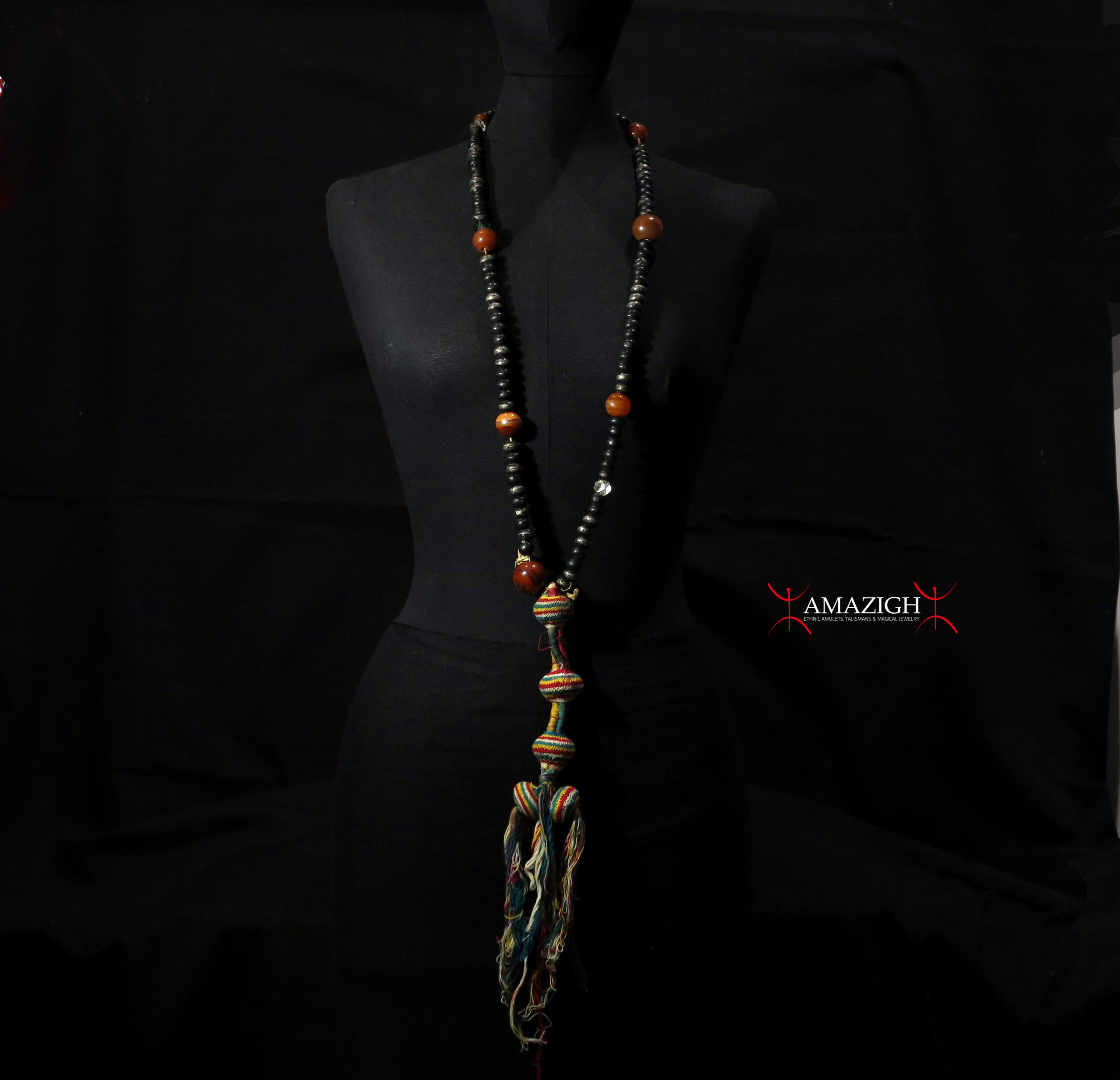 Old Fine Chaplet – Tasbih – Ebony Beads Silver Inlaid – Mauritania