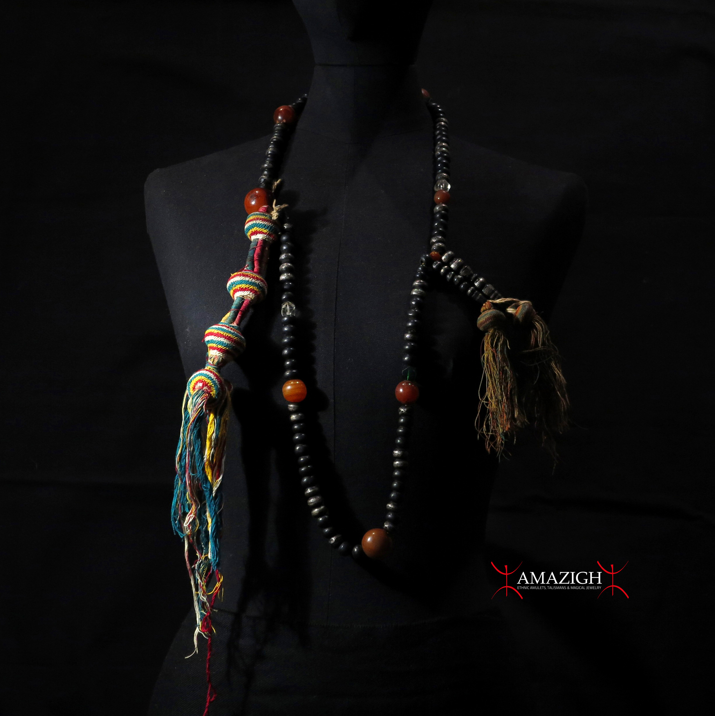 Old Fine Chaplet – Tasbih – Ebony Beads Silver Inlaid – Mauritania