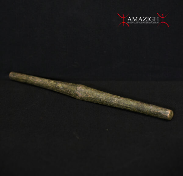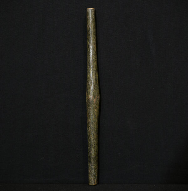 Copper bar with a bulge in the middle, circular section, extremities with punched designs. The piece is cm. 24,3 high (9.57″). Grams 332,1 (11.71 oz.).