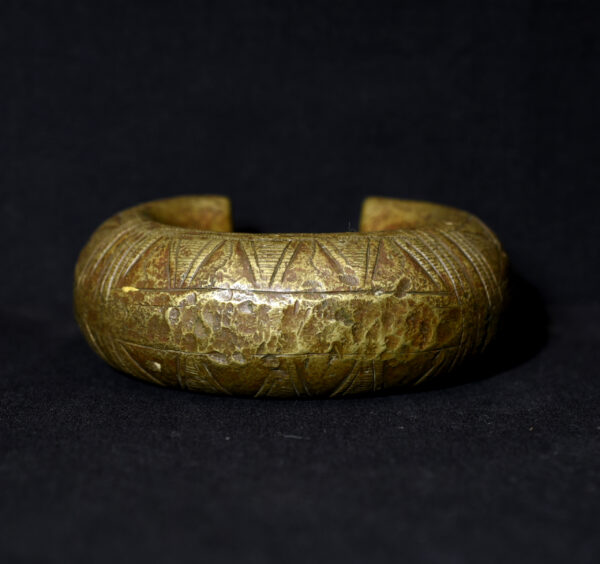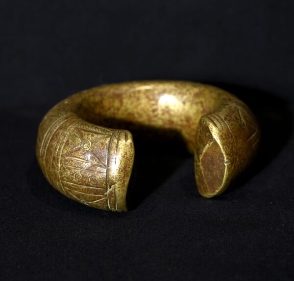 Manillas are a form of traditional currency, typically made of bronze or copper, historically used in West Africa. They were produced in large numbers and in a wide variety of designs, sizes, and weights. Likely originating in the pre‑colonial period—possibly linked to early trade with the Portuguese—manillas continued to function both as a medium of exchange and as prestigious personal ornaments well into the mid‑20th century. In some cultural contexts, they are still valued today as decorative or symbolic objects.