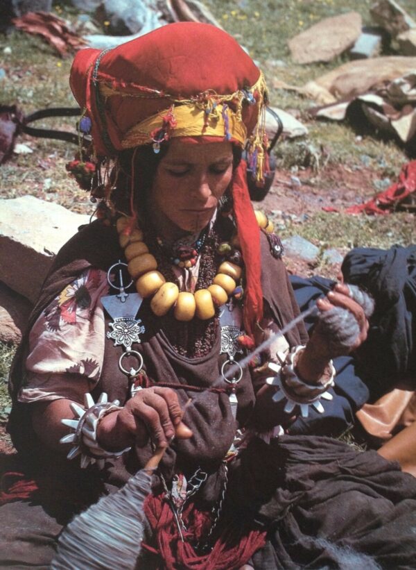 These bracelets, asbia’ iquorain, were originally worn by women of the Ait Atta tribe to defend themselves during raids