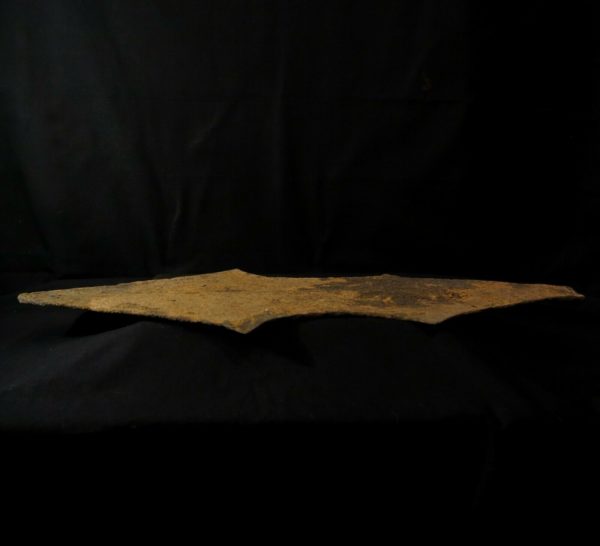 In scratch forged wrought iron, this currency has a vertical grain which divides the surface in two non synchronous levels. It cicurlated in the entire north-east region of Nigeria and the western part of Cameroon.