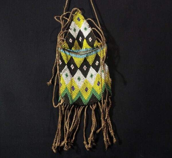 Glass beads. Approx. cm. 15,0 high x cm. 13,5 width (5.91″ x 5.31”); grams 183,3 (6.47 oz).