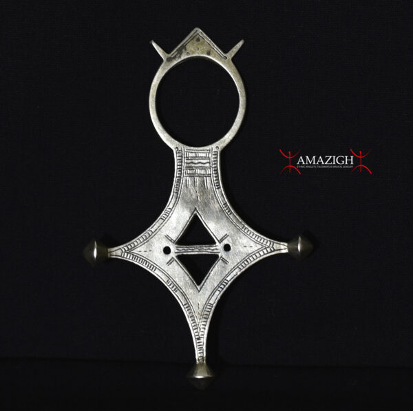 The same typical turban – the litham – that completely covers the face of the Tuareg except the eyes, has the primary function of protecting the “gates of the soul” (mouth and nostrils) from the Jinn. But the main instruments of protection are the amulets and talismans. Every Tuareg, man or woman, old or young child , has an amulet or a talisman: leather ( the gri-gri ) or silver (the khomissar , the tcherot , the herz), often contain magic formulas, powders of animal and / or vegetable or verses from the Koran. Very often one stands out among these talismans: the upper part is a ring and the lower part is a lozenge-shaped with small tips: this is the Tuareg Cross.