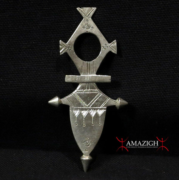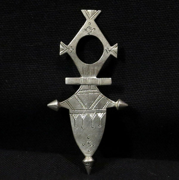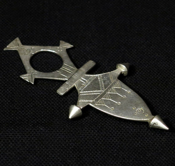 The same typical turban – the litham – that completely covers the face of the Tuareg except the eyes, has the primary function of protecting the “gates of the soul” (mouth and nostrils) from the Jinn. But the main instruments of protection are the amulets and talismans. Every Tuareg, man or woman, old or young child , has an amulet or a talisman: leather ( the gri-gri ) or silver (the khomissar , the tcherot , the herz), often contain magic formulas, powders of animal and / or vegetable or verses from the Koran. Very often one stands out among these talismans: the upper part is a ring and the lower part is a lozenge-shaped with small tips: this is the Tuareg Cross.
